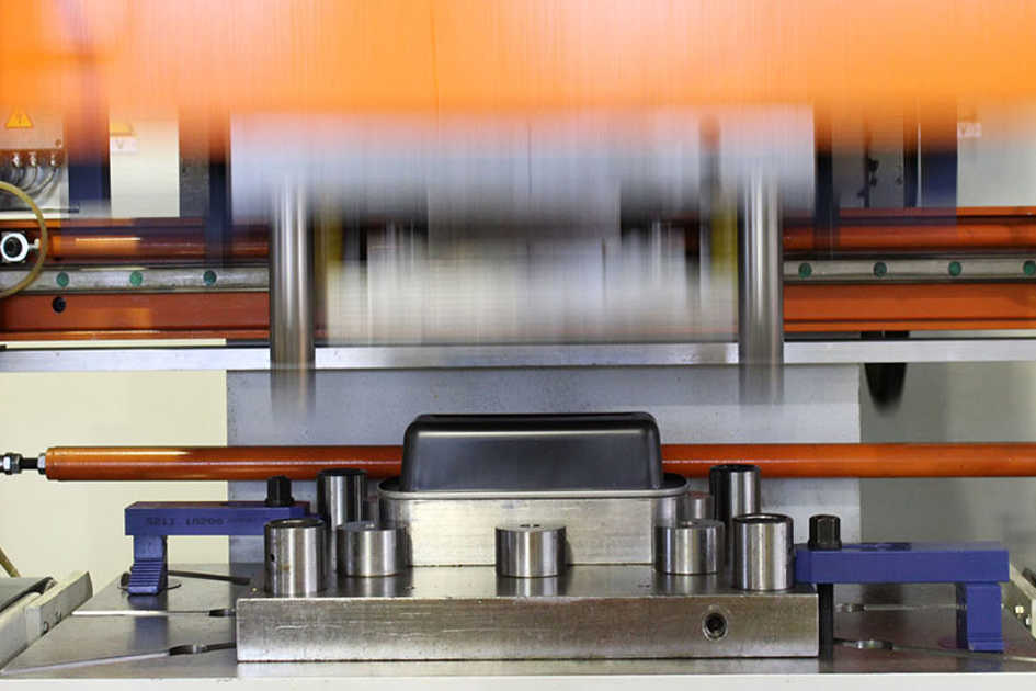A complete line with 2 hydraulic presses model C/70 and an hydraulic press of 120 tons for an hourly production of 600 pcs/h.